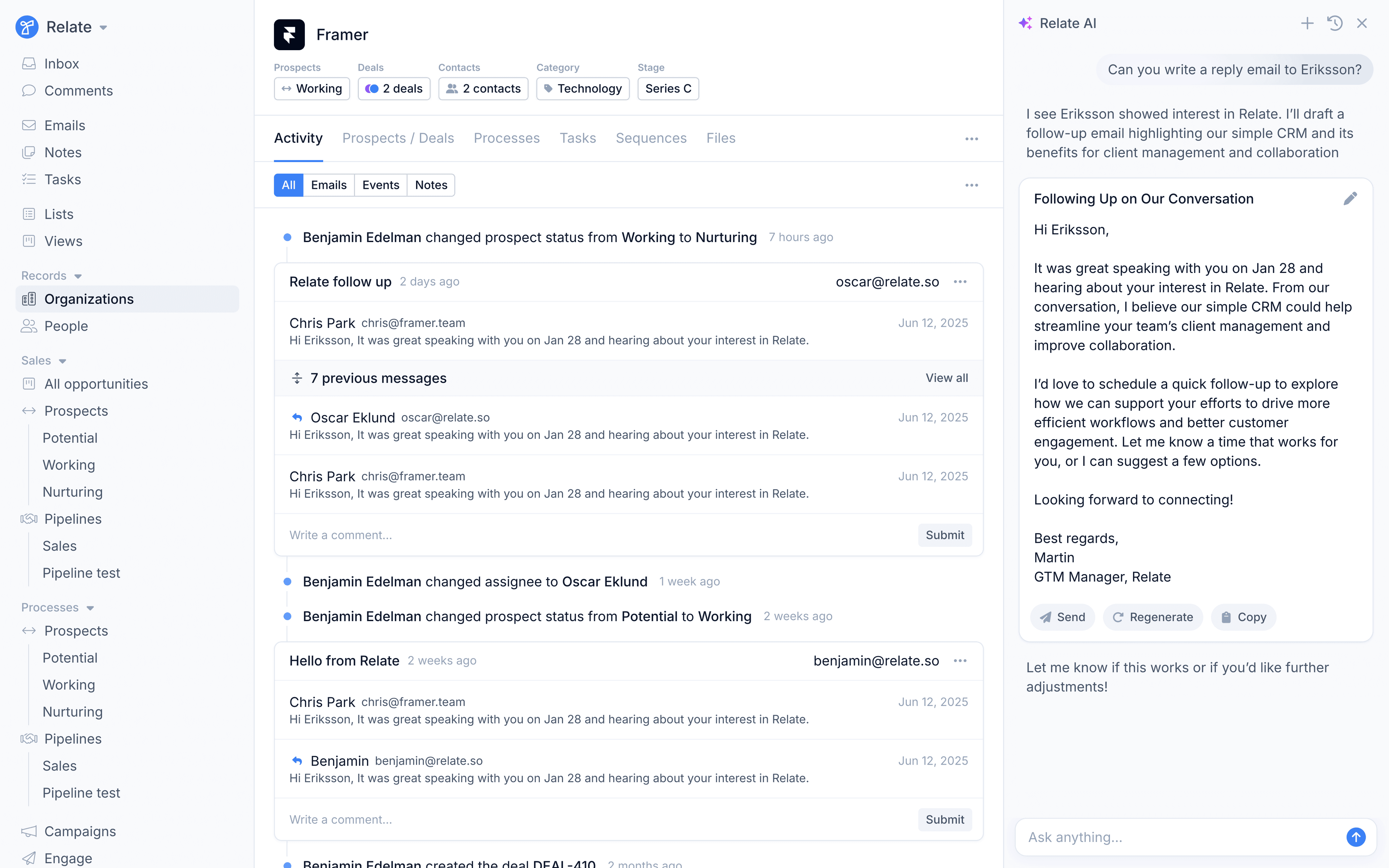 Relate automates CRM updates, processes data, writes emails,