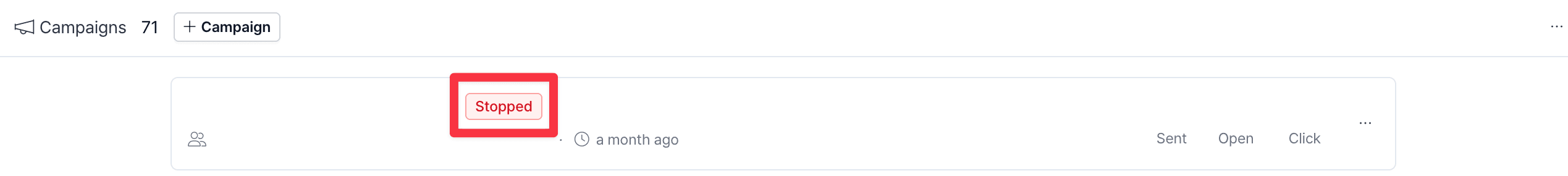 A Bounce occurs when an email cannot be delivered due to an invalid address. If the bounce rate exceeds the thresholds below, the campaign will be automatically stopped, and the status will change to stopped.