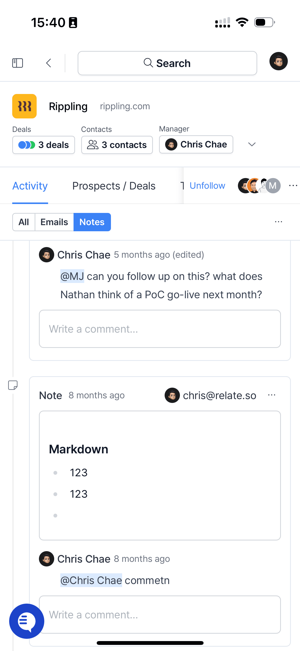 With the new mobile view, you can access organization, contact, and deal data, read notes, check email, and update deals.